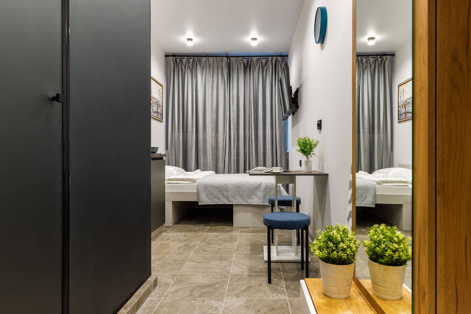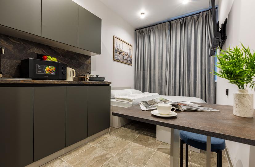 Комплекс апартаментов состоит из 6 двухместных номеров-студий, оснащенных всем необходимым для комфортного проживания.