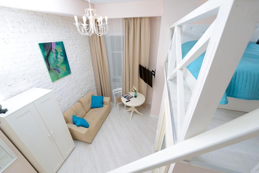 Апарт-отель в историческом центре города, раположен на втором этаже доходного дома. Двухуровневые номера, высокие потолки. Пл. Восстания и Московский вокзал в 15 мин ходьбы.