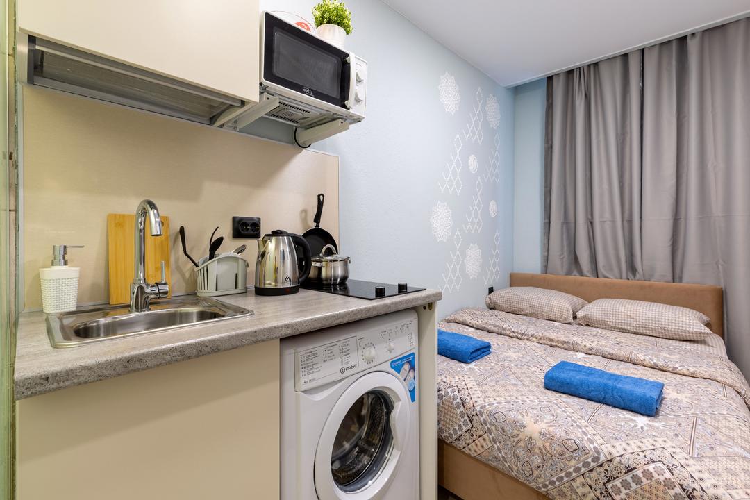Студия оснащена всем необходимым для комфортного проживания гостей.