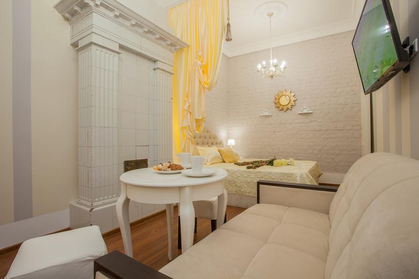 Четырехместный номер с дизайнерским оформлением, расположенные в центре города - на Петроградском острове.